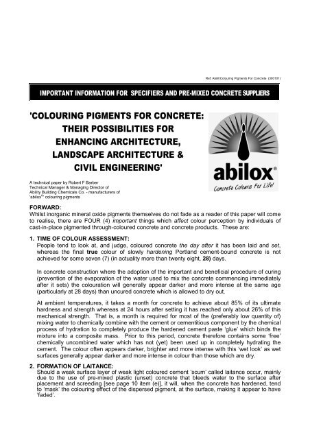 Uv Resistant Coloured Concrete Pigments By Ability Building Colours Architecture Design